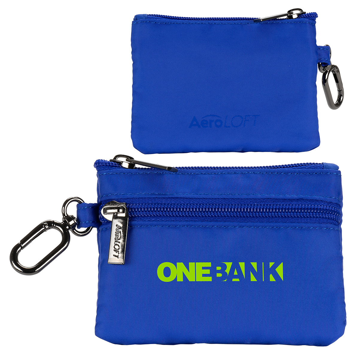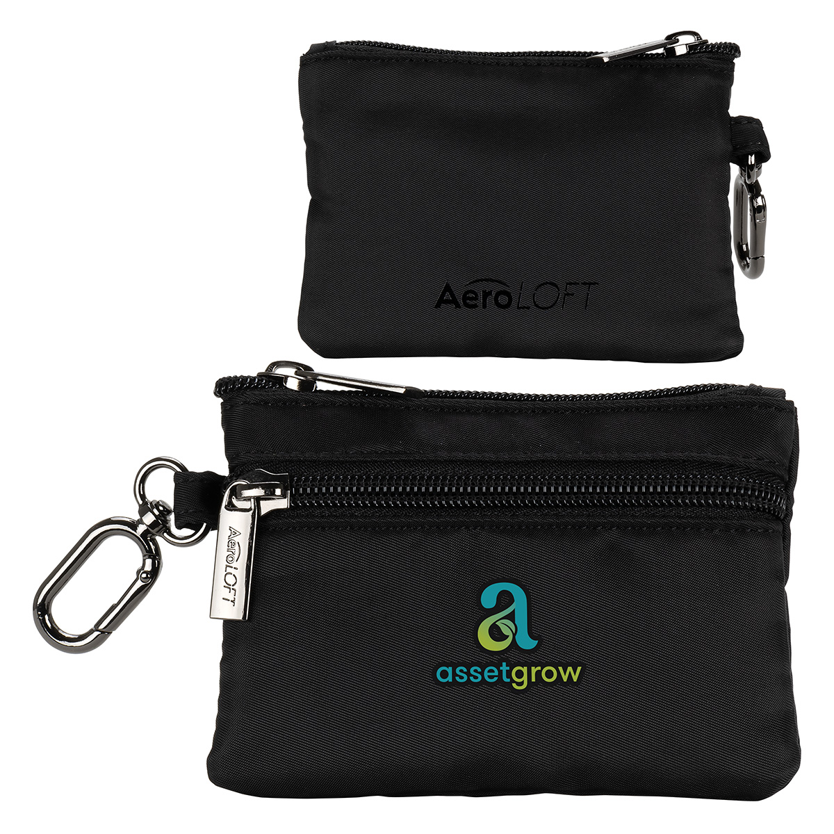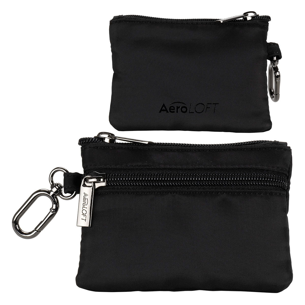 The AeroLOFT® Carabiner Zip Wallet is a slim, lightweight solution for everyday organization. Made from durable 290T polyester with a smooth 210D lining, it features a secure zippered main compartment, four easy-access card slots, and two stash pockets for cash or small essentials. A discreet O-ring carabiner clips easily to keys, bags, or belt loops, making it ideal for travel, events, and on-the-go use. 5″ L x 0.625″ W x 3.75″ H