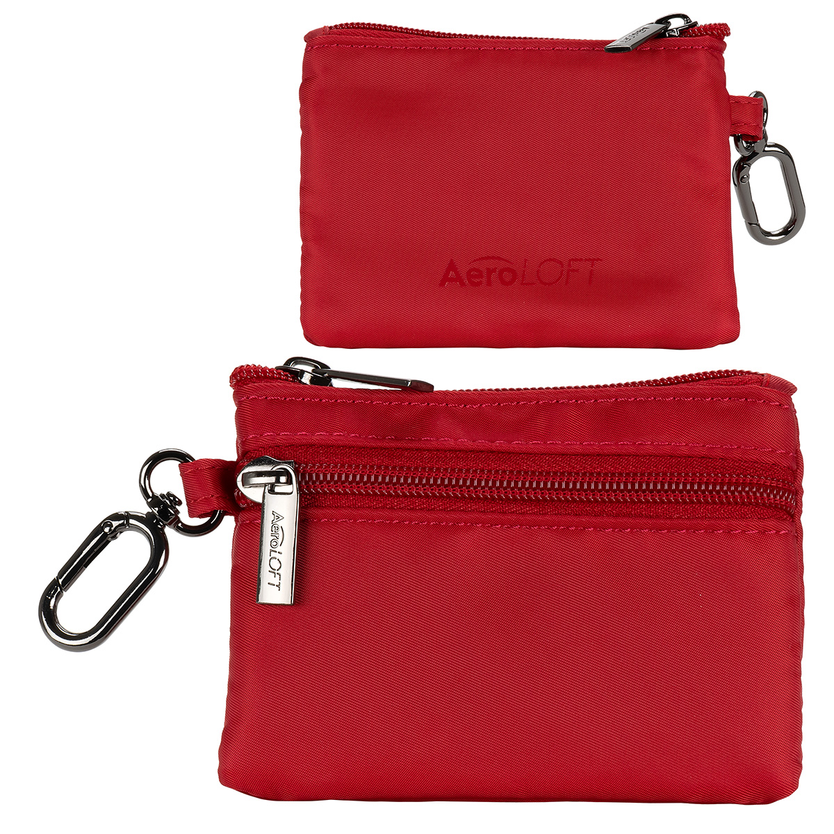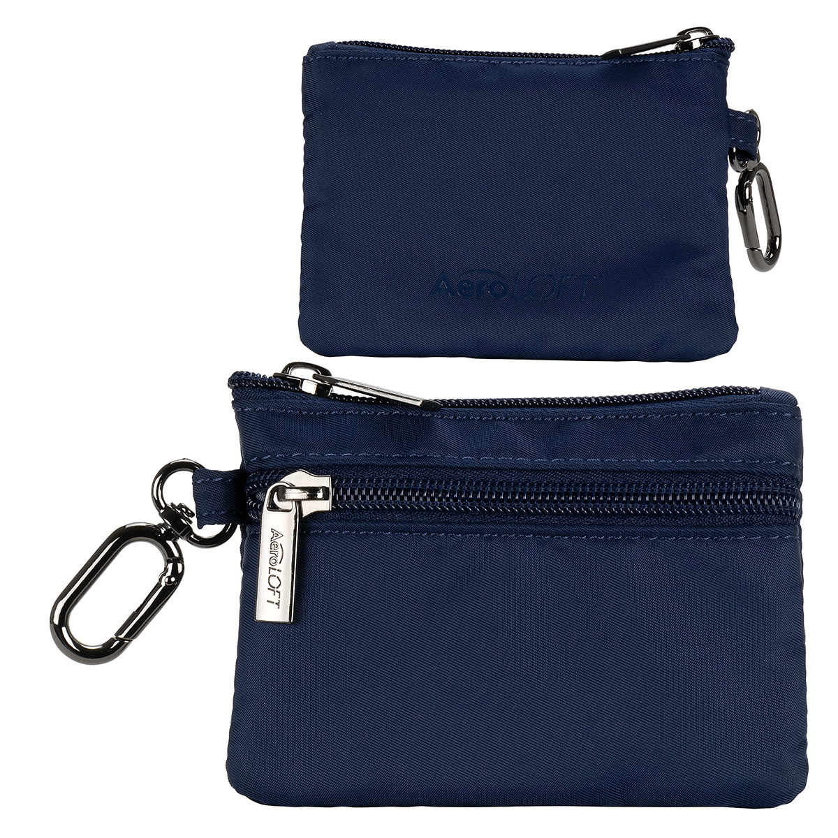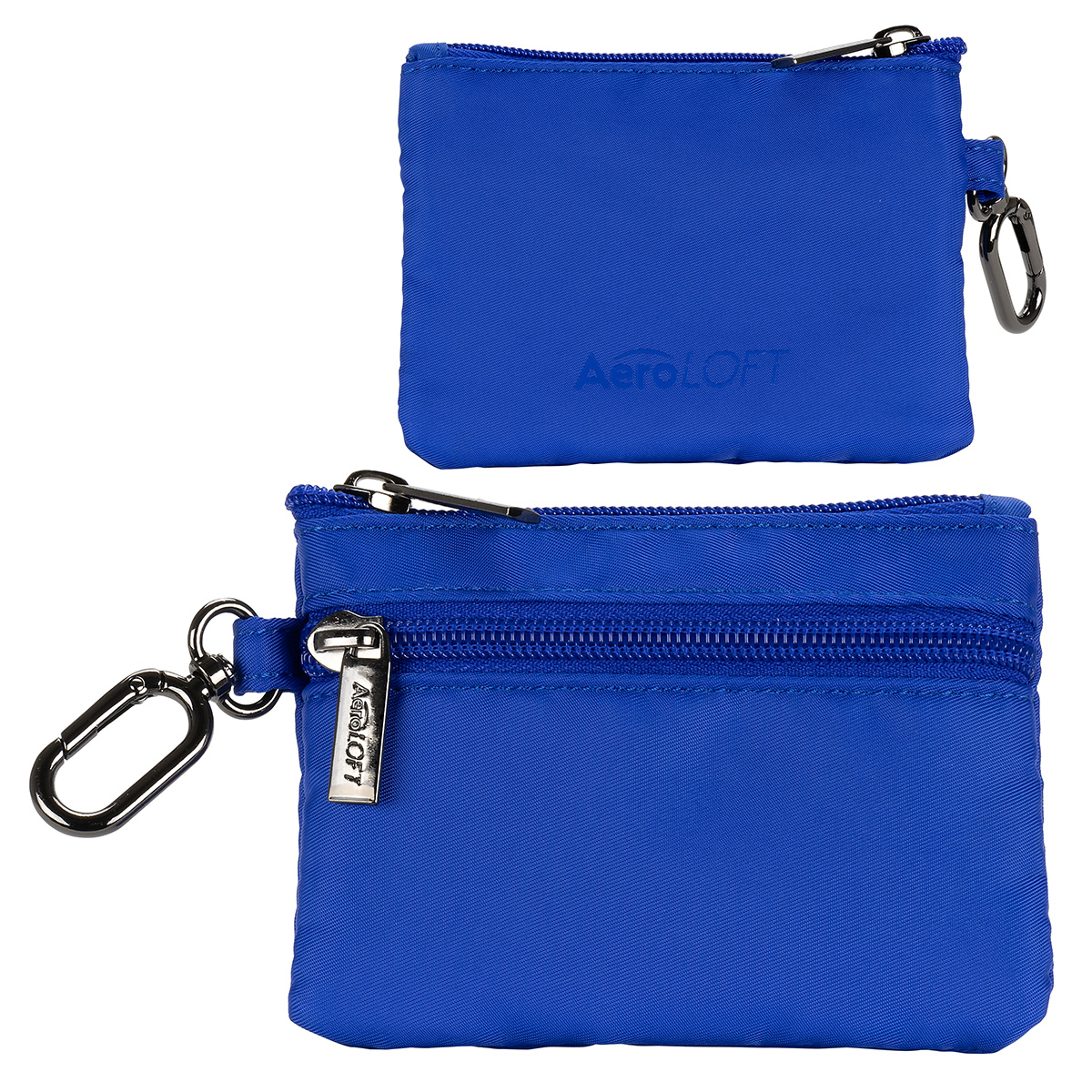 The AeroLOFT® Carabiner Zip Wallet is a slim, lightweight solution for everyday organization. Made from durable 290T polyester with a smooth 210D lining, it features a secure zippered main compartment, four easy-access card slots, and two stash pockets for cash or small essentials. A discreet O-ring carabiner clips easily to keys, bags, or belt loops, making it ideal for travel, events, and on-the-go use. 5″ L x 0.625″ W x 3.75″ H