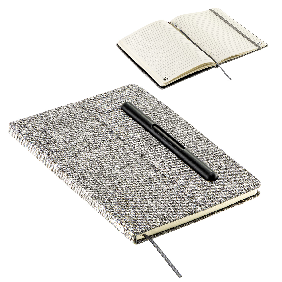 The Boardroom Hardcover Journal is designed for modern productivity. Sized at A5 (5.8″ × 8.3″), it features a sturdy hardcover with a built-in phone stand for hands-free viewing during meetings or video calls. Inside are 80 lined pages for notes and planning, plus an integrated double-tipped pen with an everlasting pencil and smooth ballpoint option. A smart, all-in-one solution for offices, conferences, and executive gifts. Complies with Prop 65. 5.75″ L x 0.5″ W x 8.25″ H