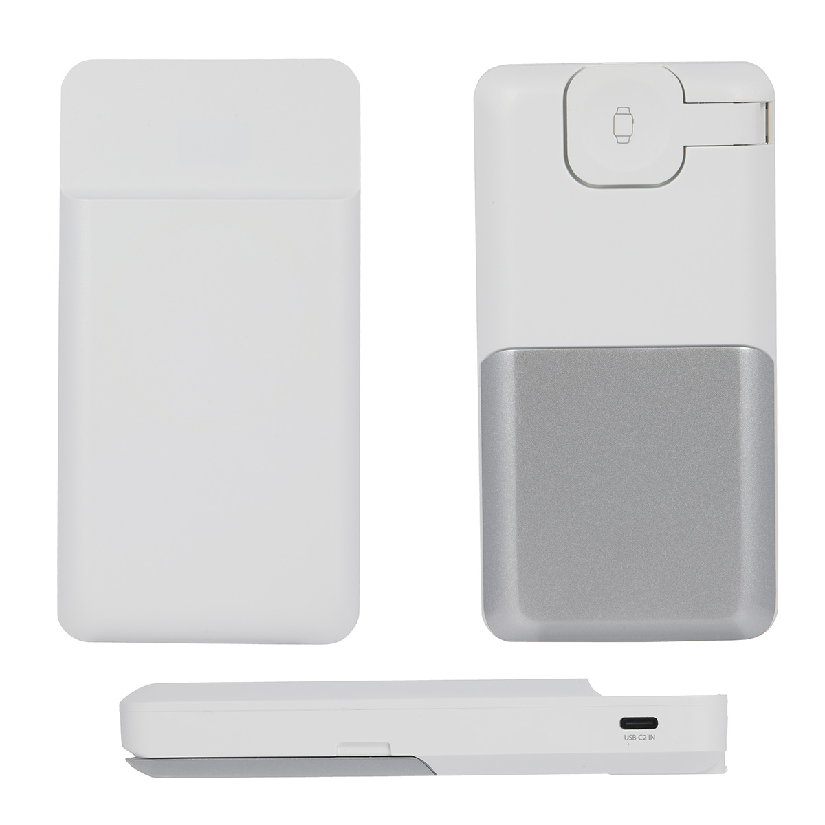 The Diplomat 10,000mAh 20W PD Power Bank with Wireless Charger, Watch Charger & Stand combines portable power with multi-device charging convenience. It features dedicated wireless charging areas for phones, earbuds, and Apple Watch, plus magnetic alignment for iPhone 12 and newer models. Complete with a foldable adjustable stand, digital battery display, USB-C PD charging, and USB-A output, it is ideal for travel and everyday use. A QR code is printed on each item providing access to the latest user manual. Complies with FCC, Prop 65, UN38.3. 5.5″ L x 0.875″ W x 2.75″ H