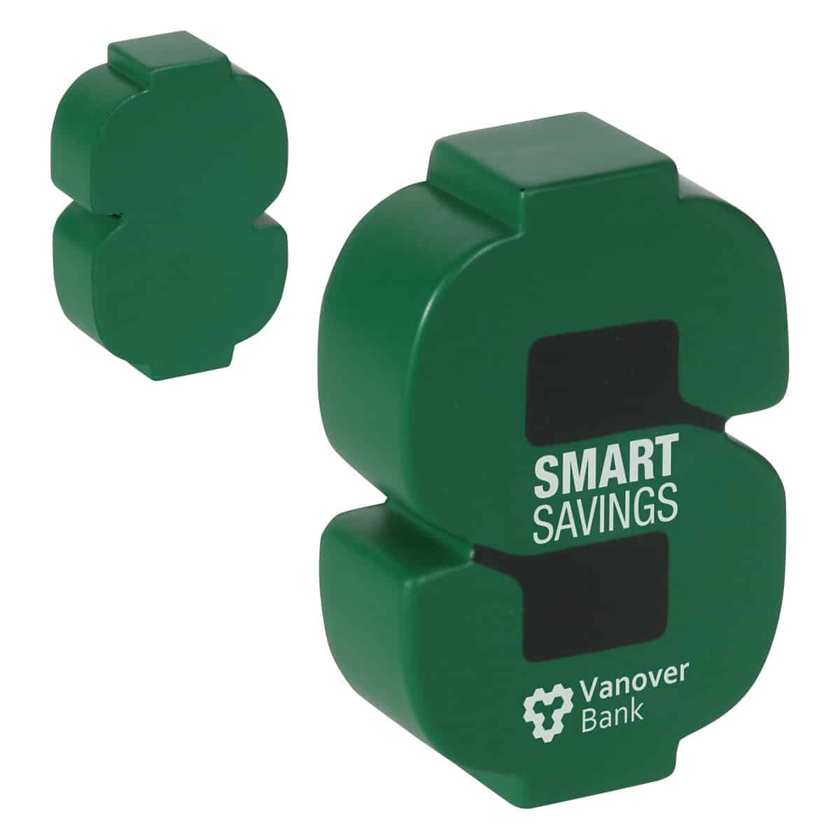 Dollar Sign Shaped Polyurethane Stress Reliever. Complies with ASTM, CCPSA, CPSIA, Prop 65. 2.25″ L x 1″ W x 3.25″ H
