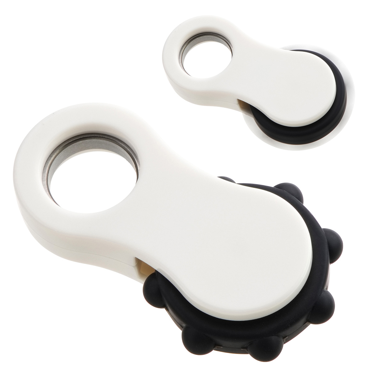 The Push Pop Massage Finger Fidget Spinner offers a fun, stress-relieving experience with a sustainable twist. Made from recycled ABS and soft silicone, this gear-style centrifuge spinner features raised massage bumps for tactile stimulation and calming relief. The smooth spinning motion encourages focus while the compact size makes it perfect for desks, classrooms, travel, or on-the-go moments of relaxation. Complies with ASTM, CPSIA, Prop 65. 2.625″ L x 0.625″ W x 1.5″ H