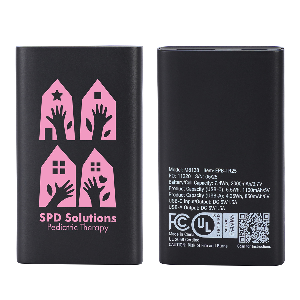 Power up your essentials with the Triumph 2000mAh UL-Listed Power Bank! Compact, lightweight, and travel-friendly, this entry-level charger is perfect for quick boosts on the go. Featuring a USB-C input/output and USB port output at 5V/2A, it delivers reliable performance when you need it most. Safety is built in with UL certification, giving you confidence with every charge. Complies with OU, Prop 65, UN38.3. 2.75″ L x 0.5″ W x 1.625″ H